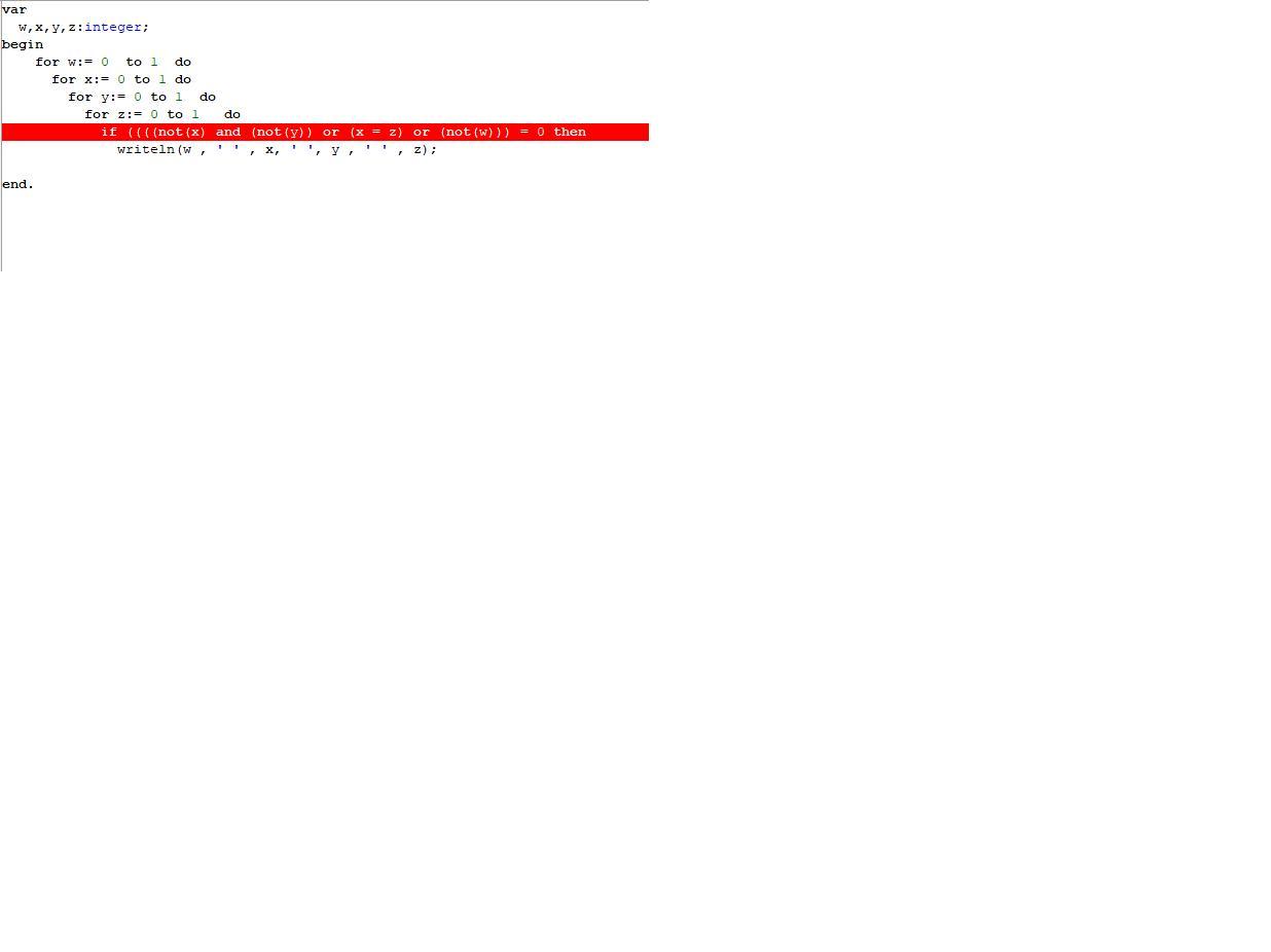 if (((not(x)) and (not(y))) or (x=z) or not(w))=0