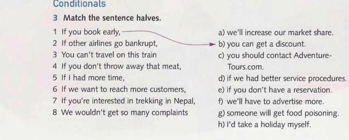 2 If other airlines go bankrupt, 3 You can't travel on this train 4 If you don't throw away that meat,