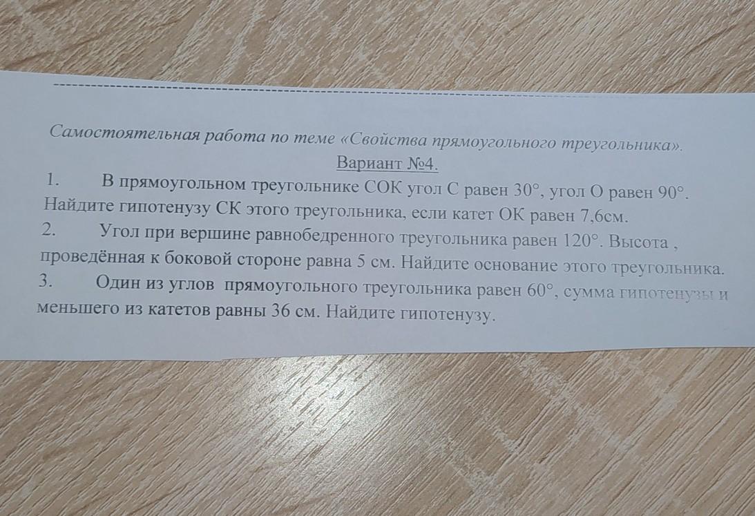 1. В прямоугольном треугольнике СОК угол С равен 30°, угол О равен 90°.