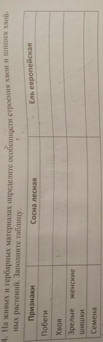на живых и гербарных материалах определите особенности строения хвои и шишек хвойных растений. заполните таблицу