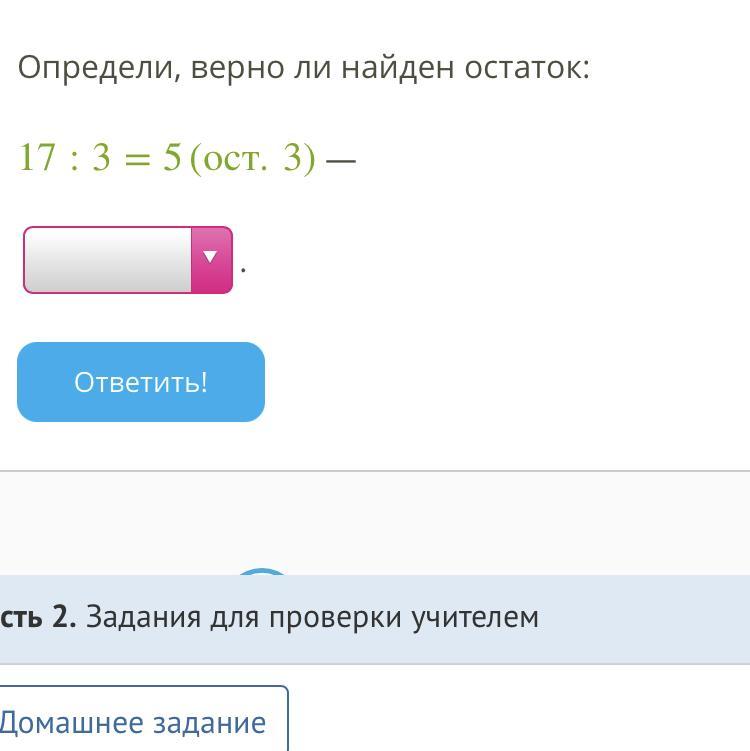 17 : 3 = 5 (ост. 2) - Ответ правильный