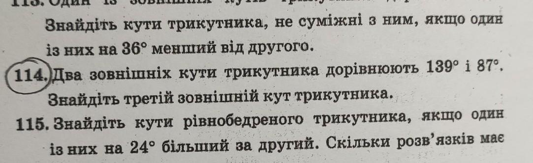 Сума зовнішніх кутів трикутника 360°, тому ∠3=360-139-87=134°