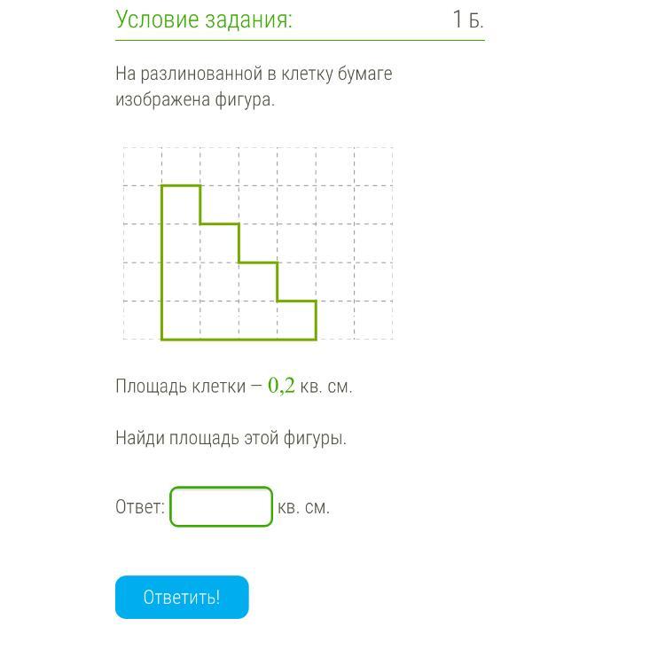 Если площадь каждой клетки равен 0,2 кв, см а клеток 10 то мы должны 0,2*10=2