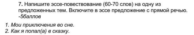 . Напишите эссе-повествование (60-70 слов) на одну из предложенных тем. Включите в эссе предложение с прямой речью. -5баллов