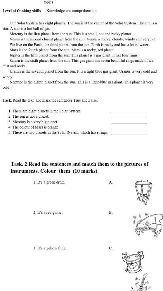 картинок не хватает. 1 - зеленый барабан, 2 - красная гитара, 3 - желтая флейта