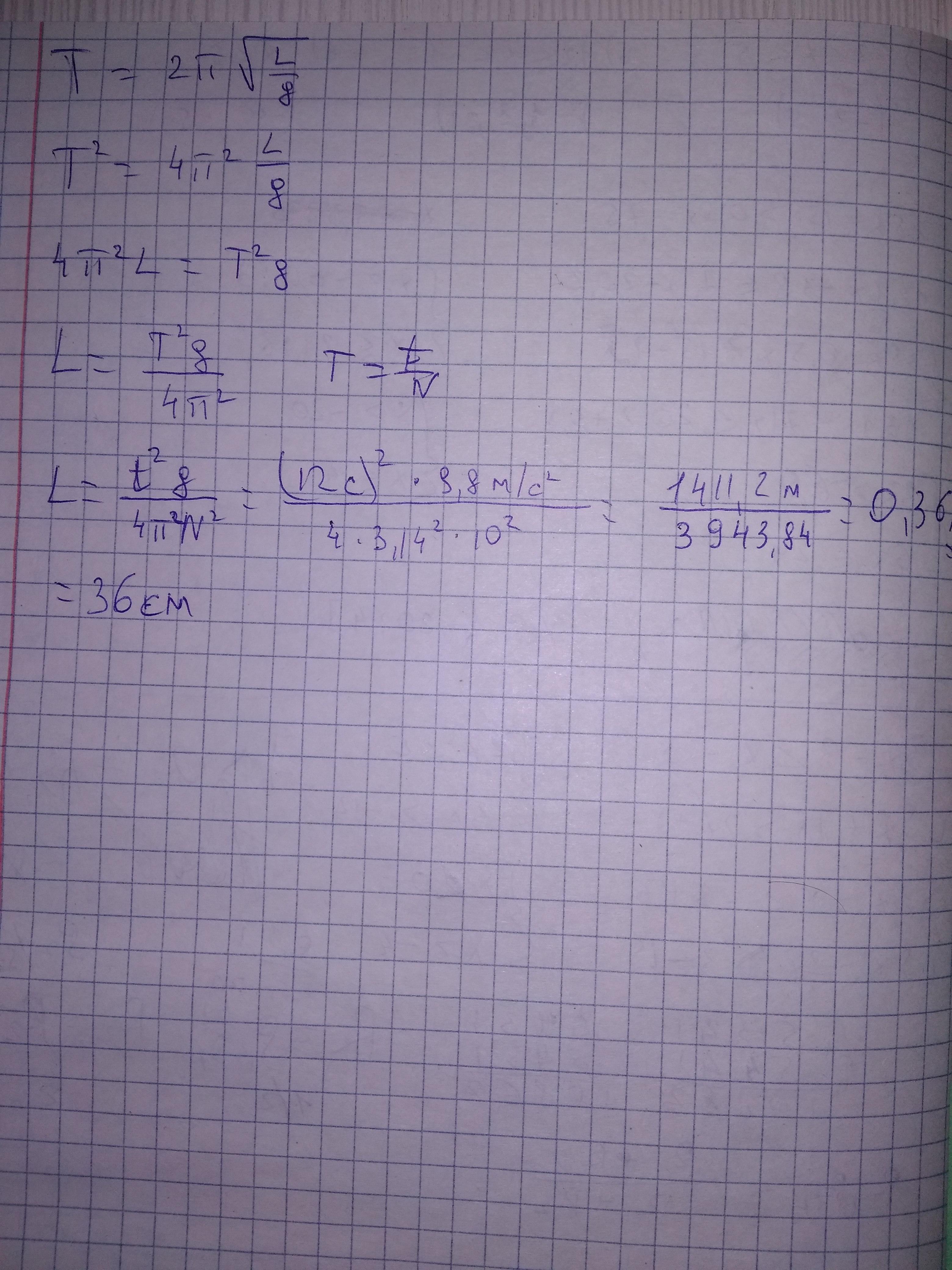 Яблоко подвешено на вертикальной нити, образуя простой маятник. Яблоко отклоняют в сторону, а затем отпускают. Оно совершает 10 колебаний за 12 секунды. Найдите длину нити. ПОМОГИТЕ ПЖЖ