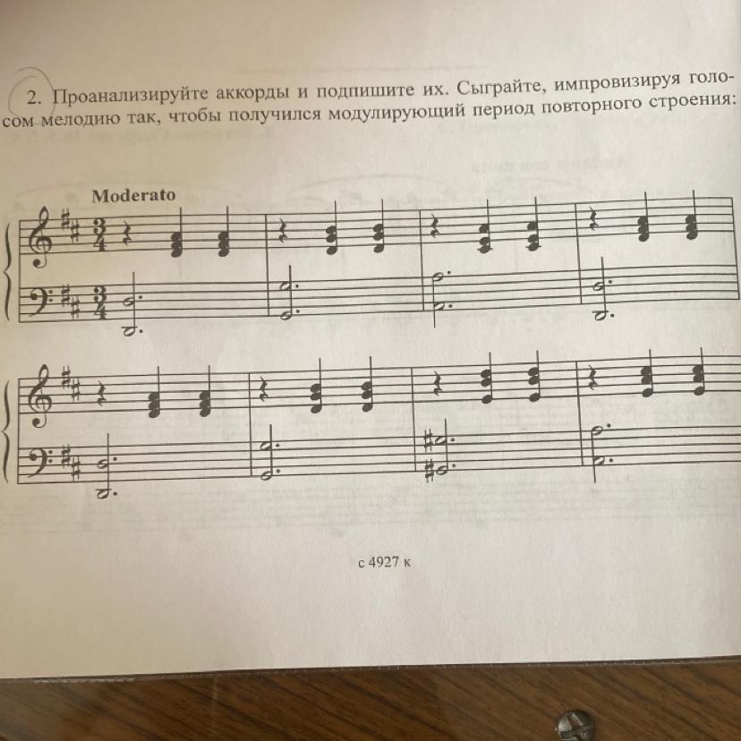 Ответ: первый акорд ре фа до, второй такой же,третий ре соль си четвёртый такой же пятый как и первый и второй