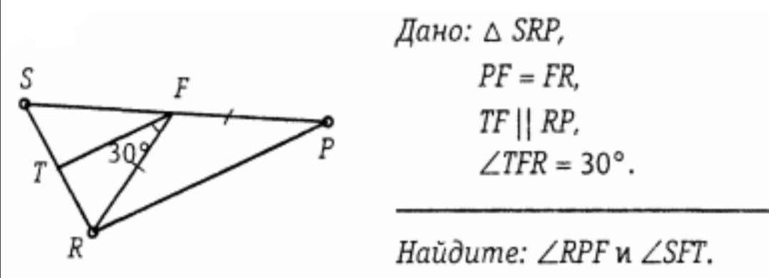 <TFR=<FRP=30 градусов,как внутренние накрест лежащие углы при TF||RP и секущей PF