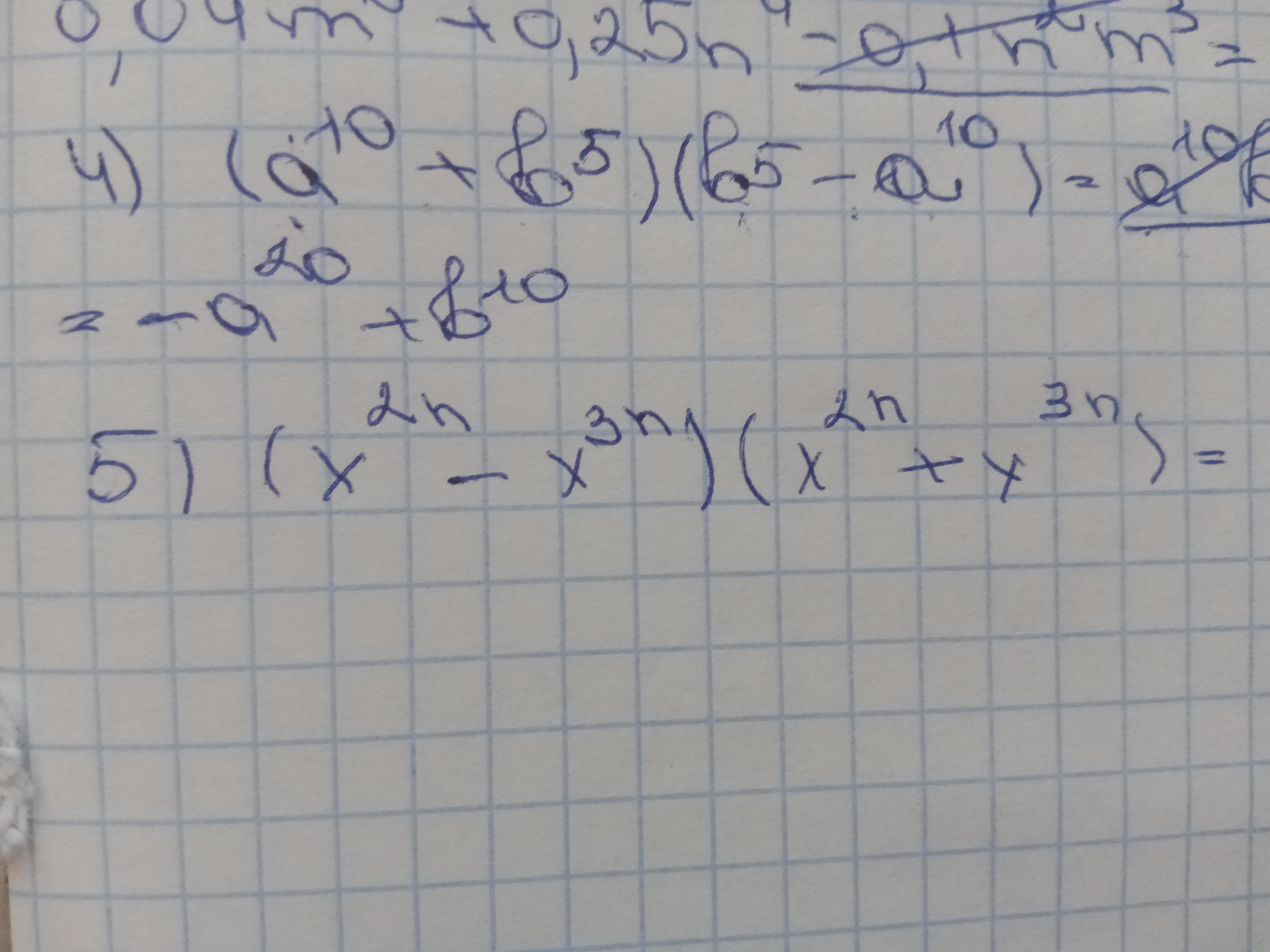 Выполнить умножение многочлена (х в степени 2n-х в степени 3n)(х в степени 2n+х в степени 3n),где n натуральное число. (пример под цифрой 5)