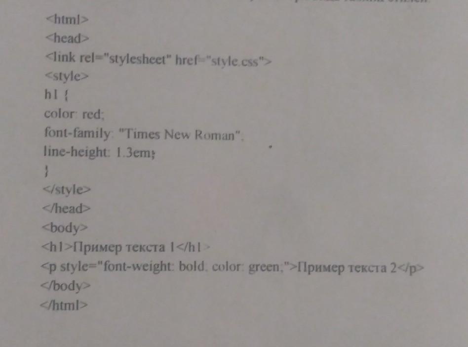 имеется код html в котором используется три вида таблиц стилей укажите используемые стили подчеркнув их и указав напротив соответствующее название