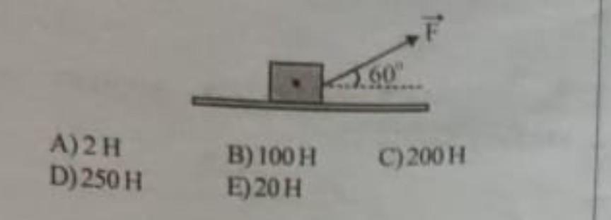 Тело массой 50 кг под действием силы, показанной на рисунке, двиожстся с ускорением 2 м/c Oпределите силу, действующую на тело (трением пренебречь, cos 60°=1/2,