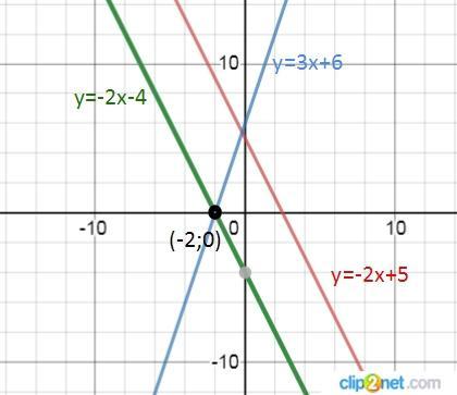 Задати формулою лінійну функцію Графік який паралельний прямій у=-2х +5 і перетинає графік функції у=3х+6 в точці яка належить осі абсцис