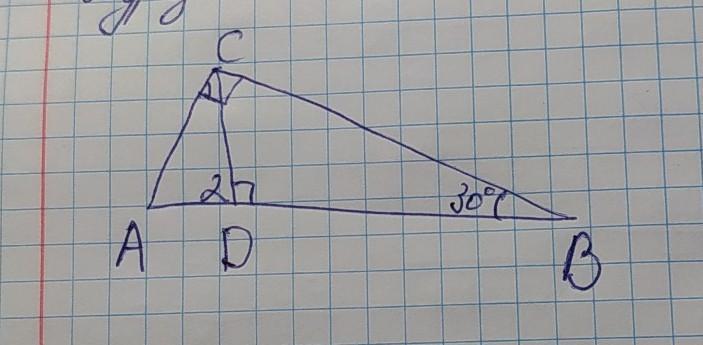<А = 180-30-90=60°( из тр АВС)