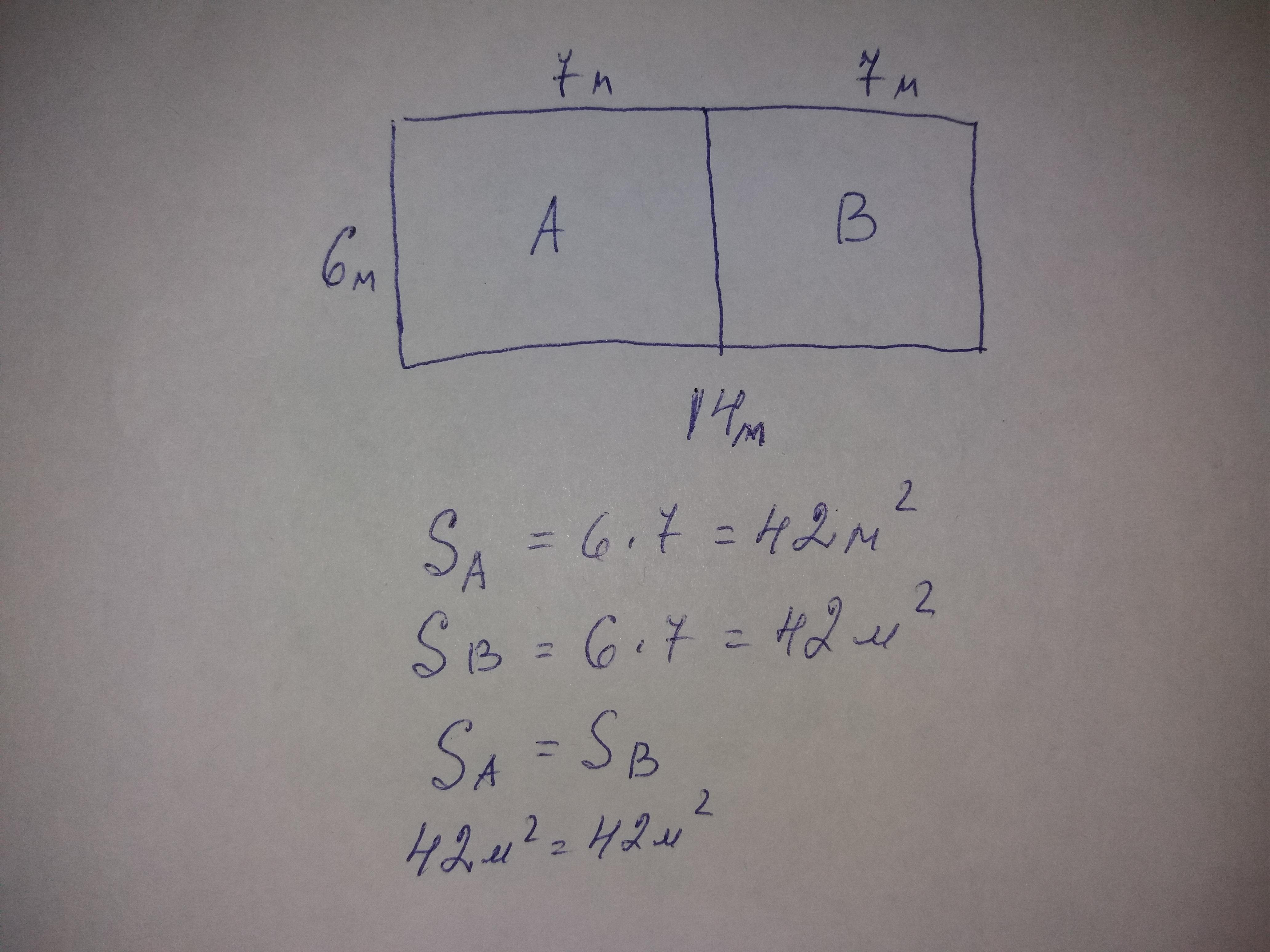кровельный лист со сторонами 6м и 14м разрезали по полам так что у получившихся листов получилось 6м и 7м.