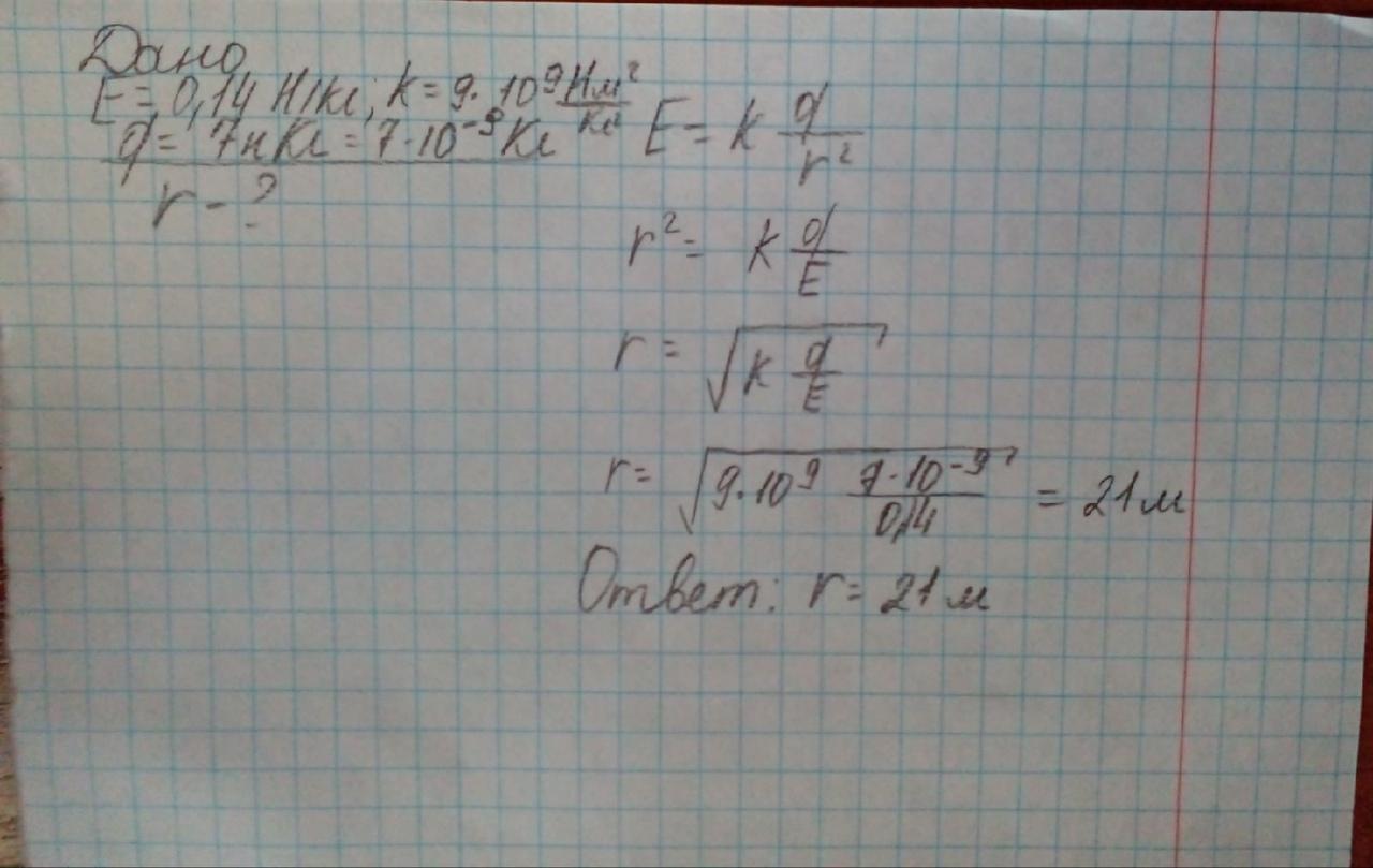 2. На каком расстоянии от заряда 7нКл напряжённость электрического поля будет равна 0,14Н/Кл? (3)