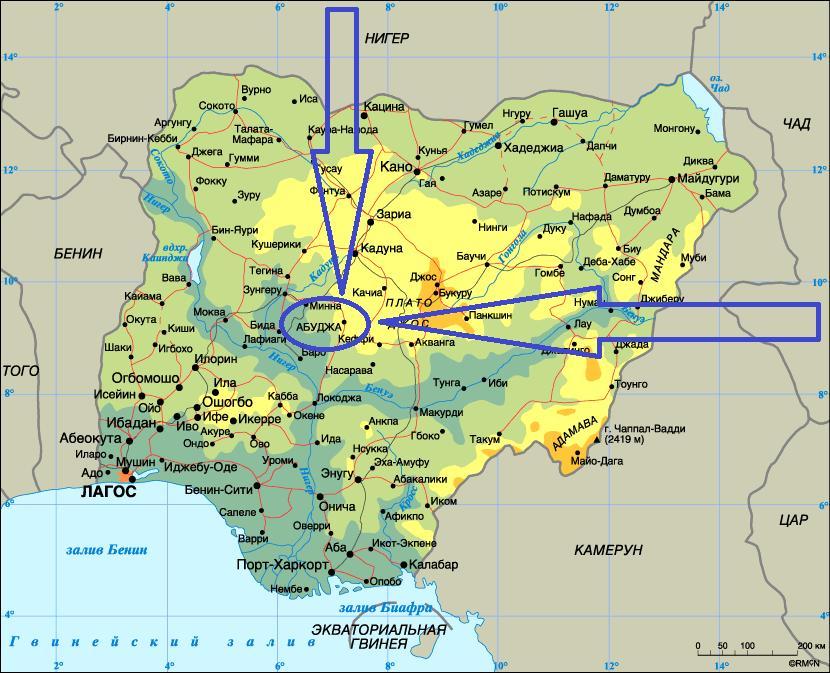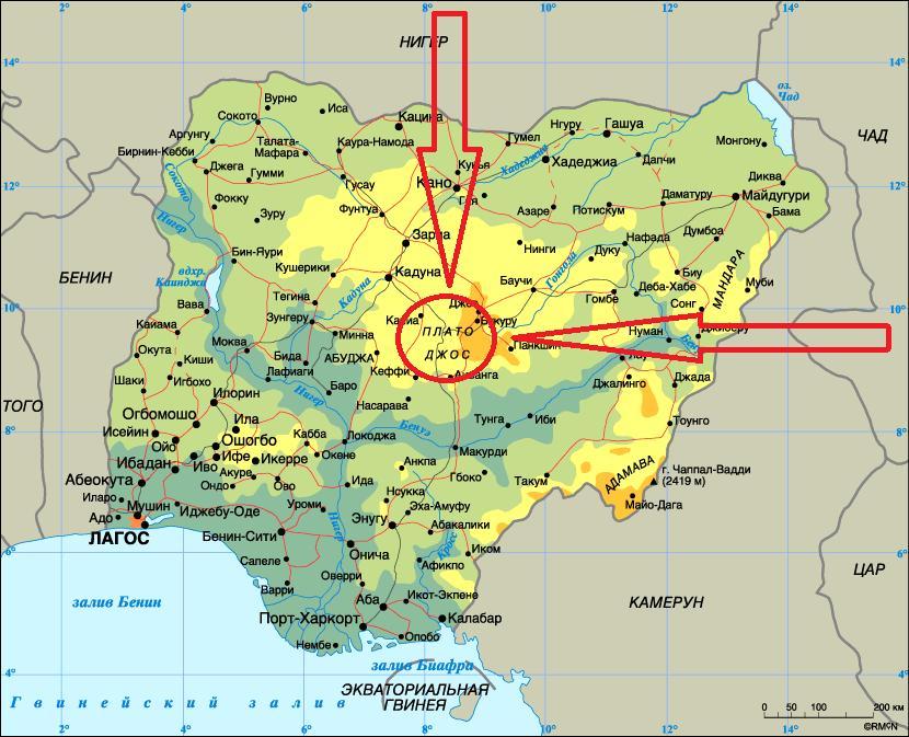 Обратимся к физической карте мира.На ней видно, что существует два географических объекта с координатами 9° с.ш. 8° в.д.Это город Абуджа (столица Нигерии) и плато Джос.