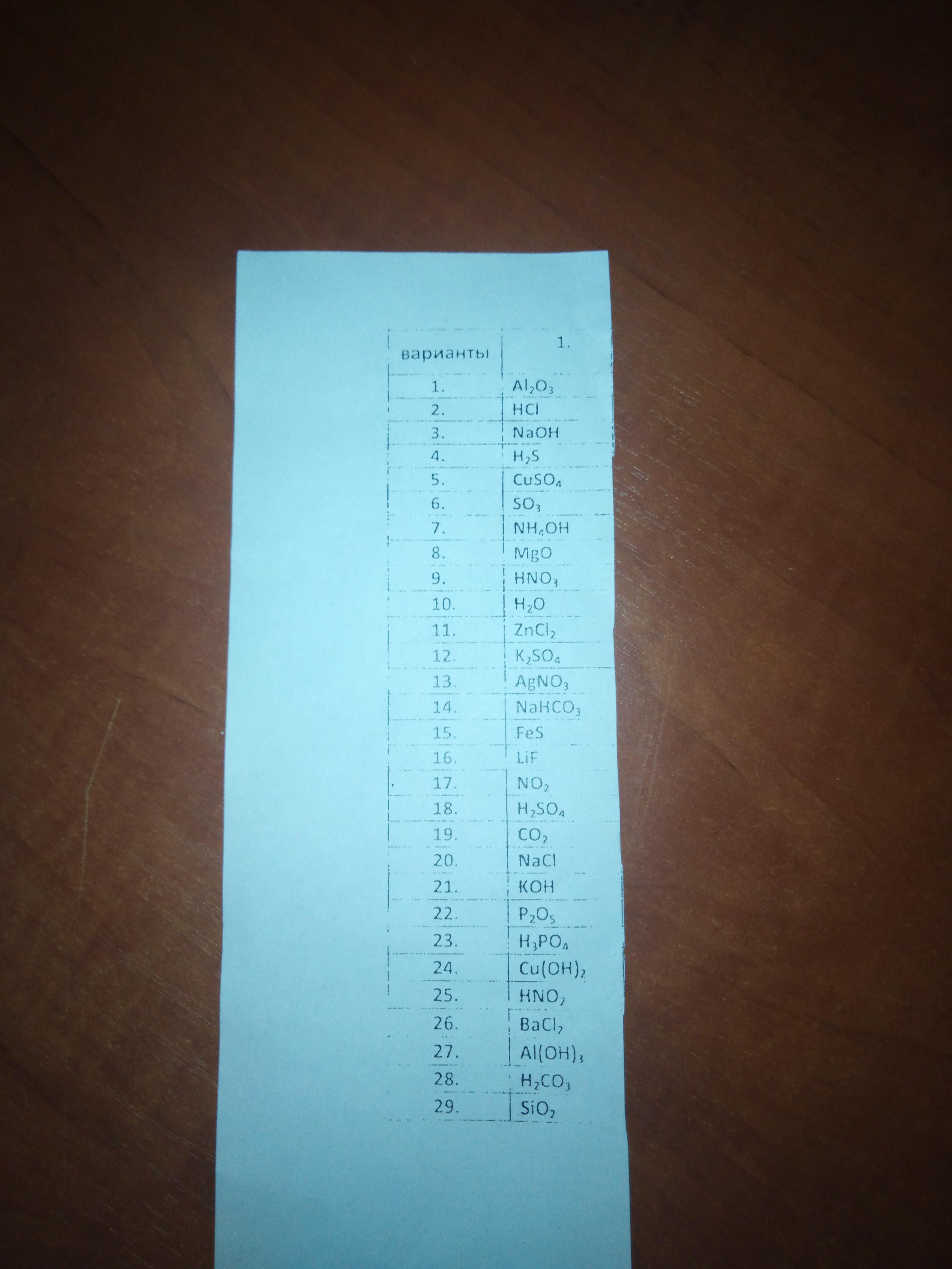 Соли: CuSO4, ZnCl2, K2SO4, AgNO3, NaHCO3, FeS, LiF, NaCl, BaCl2,