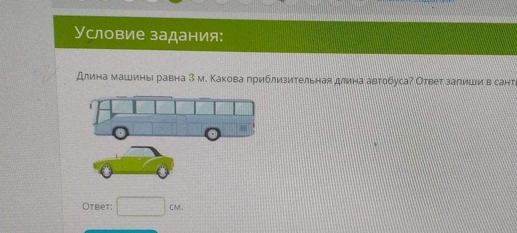 На картинке видно, что длина машины в два раза меньше, чем у автобуса.