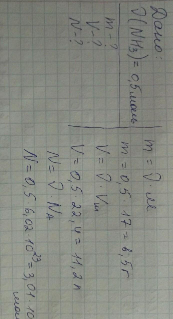 N=n*NA N(NH3)=1,17 моль*6,02*10²³ молекул/моль =7*10²³ молекул