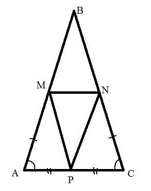 Значит △AMP=△CNP по 1му признаку. => MP=NP, а значит △MPN - равнобедренный, чтд.