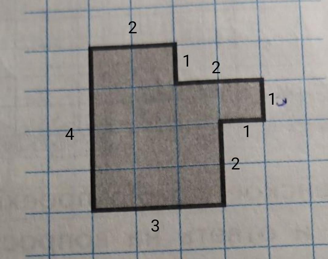 2) Найди периметр этой фигуры, если сторона клетки 1 см