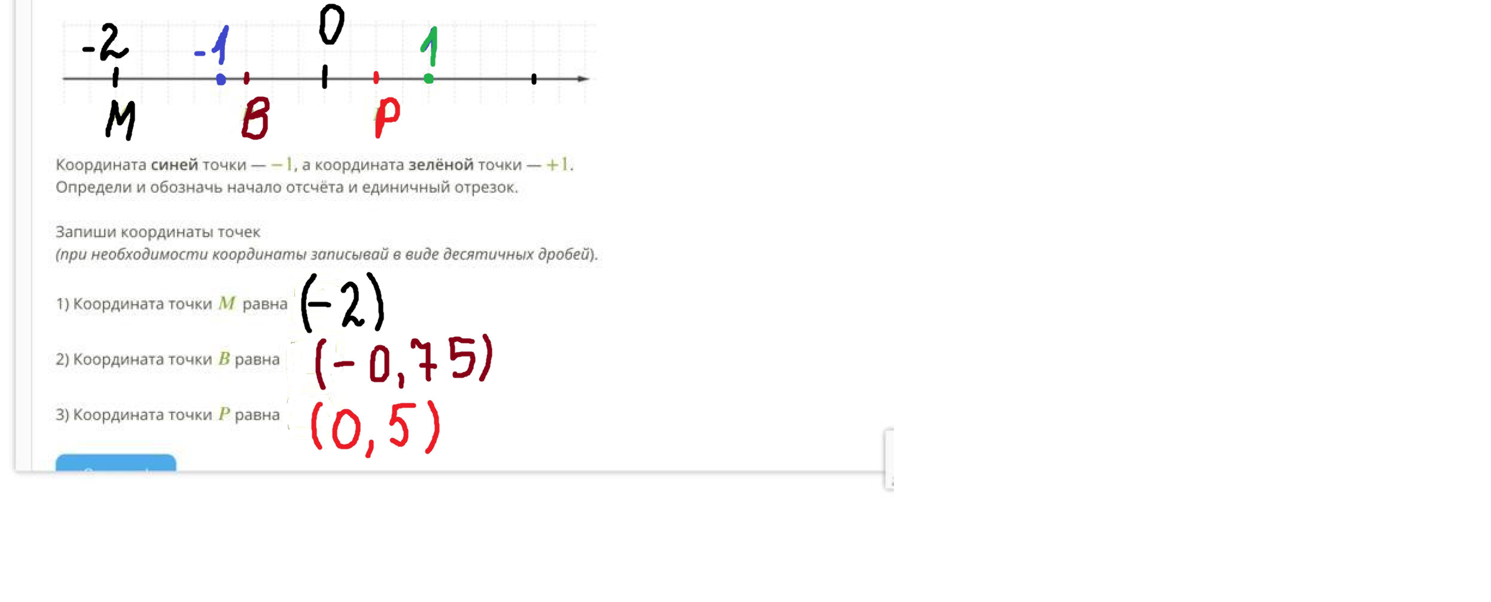 Координата синей точки — −1, а координата зелёной точки — +1.