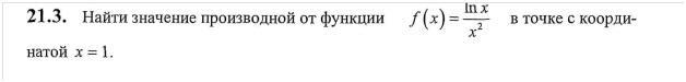 f'(x) =  \frac{( ln(x))'  \times  {x}^{2} - ( {x}^{2}) '\times   ln(x)  }{ {x}^{4} }  =  \\  =  \frac{ \frac{1}{x}  \times  {x}^{2} - 2x ln(x)  }{ {x}^{4} }  =  \\  =  \frac{x(1 - 2 ln(x)) }{ {x}^{4} }  =  \frac{1 - 2 ln(x) }{ {x}^{3} }
