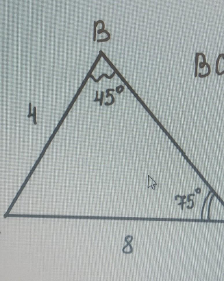 Сначала найдем угол А. Поскольку мы знаем два других угла, это не трудно: 180-75-45 = 60.