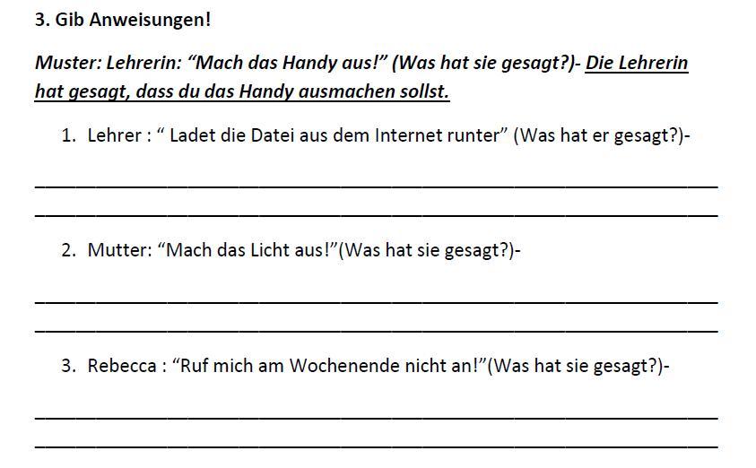 1. Der Lehrer hat gesagt, dass wir die Datei aus dem Internet runterladen sollen.