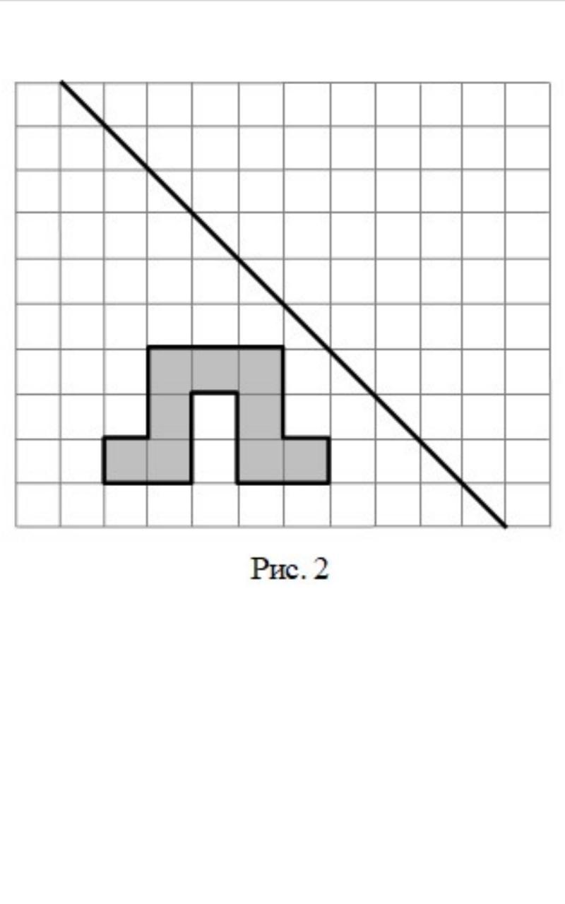 На рис. 1 на клетчатой бумаге изображены фигуры, симметричные относительно изображённой прямой. Нарисуйте на рис. 2 фигуру, симметричную заштрихованной фигуре относительно данной прямой.