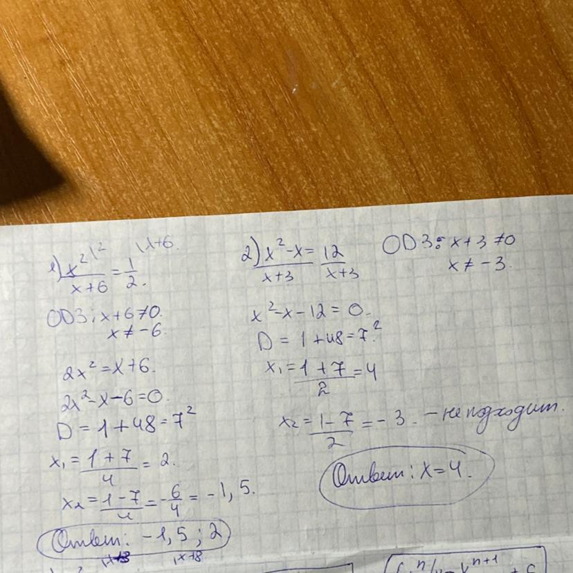 x₁=(1-7)/2=-6/2=-3 - корень не подходит, так как x+3≠0; x≠-3.