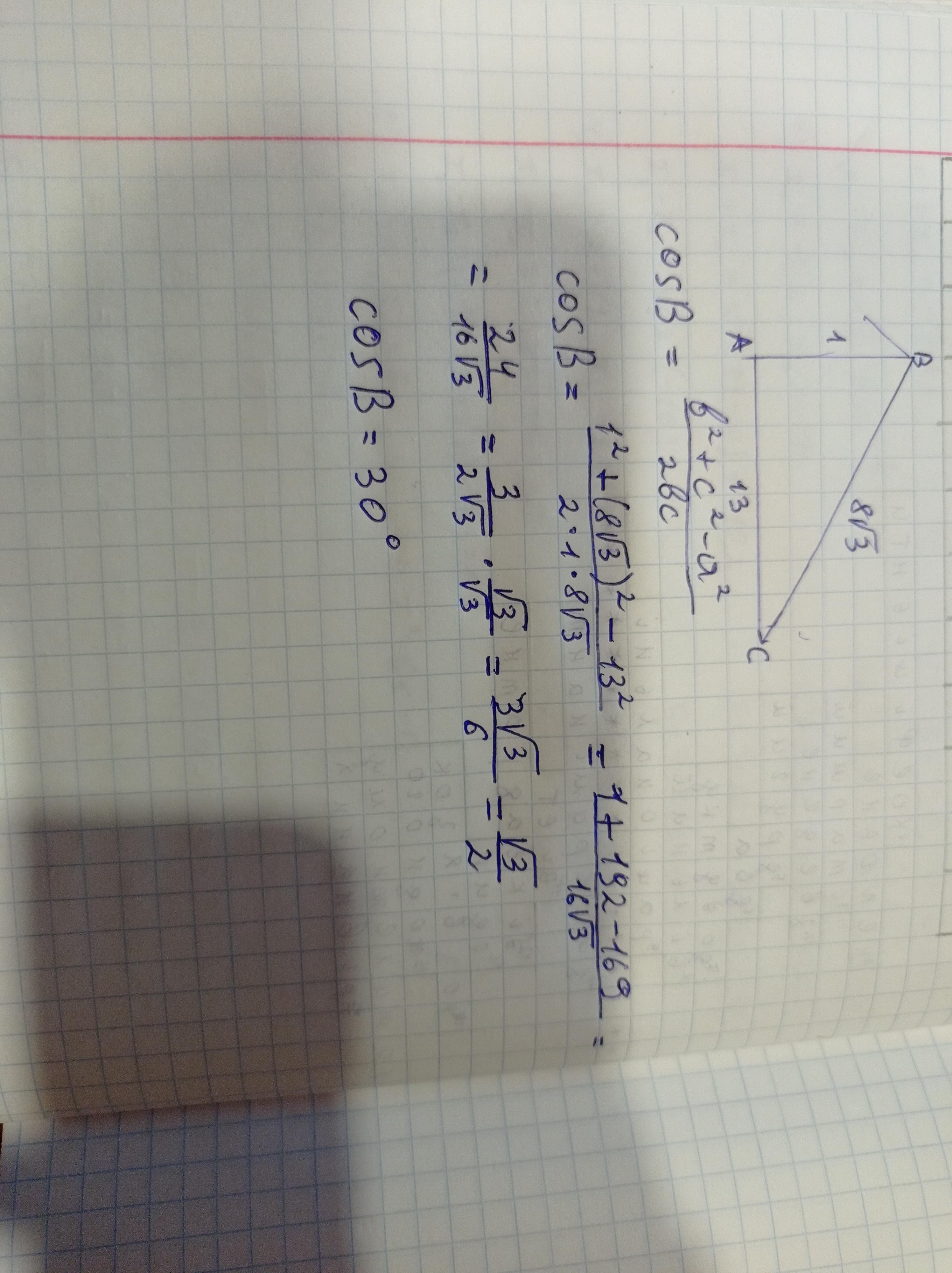 знайдіть кут в трикутника авс, якщо ac = 13 см, ab = 1 см, bc = 8√3 см