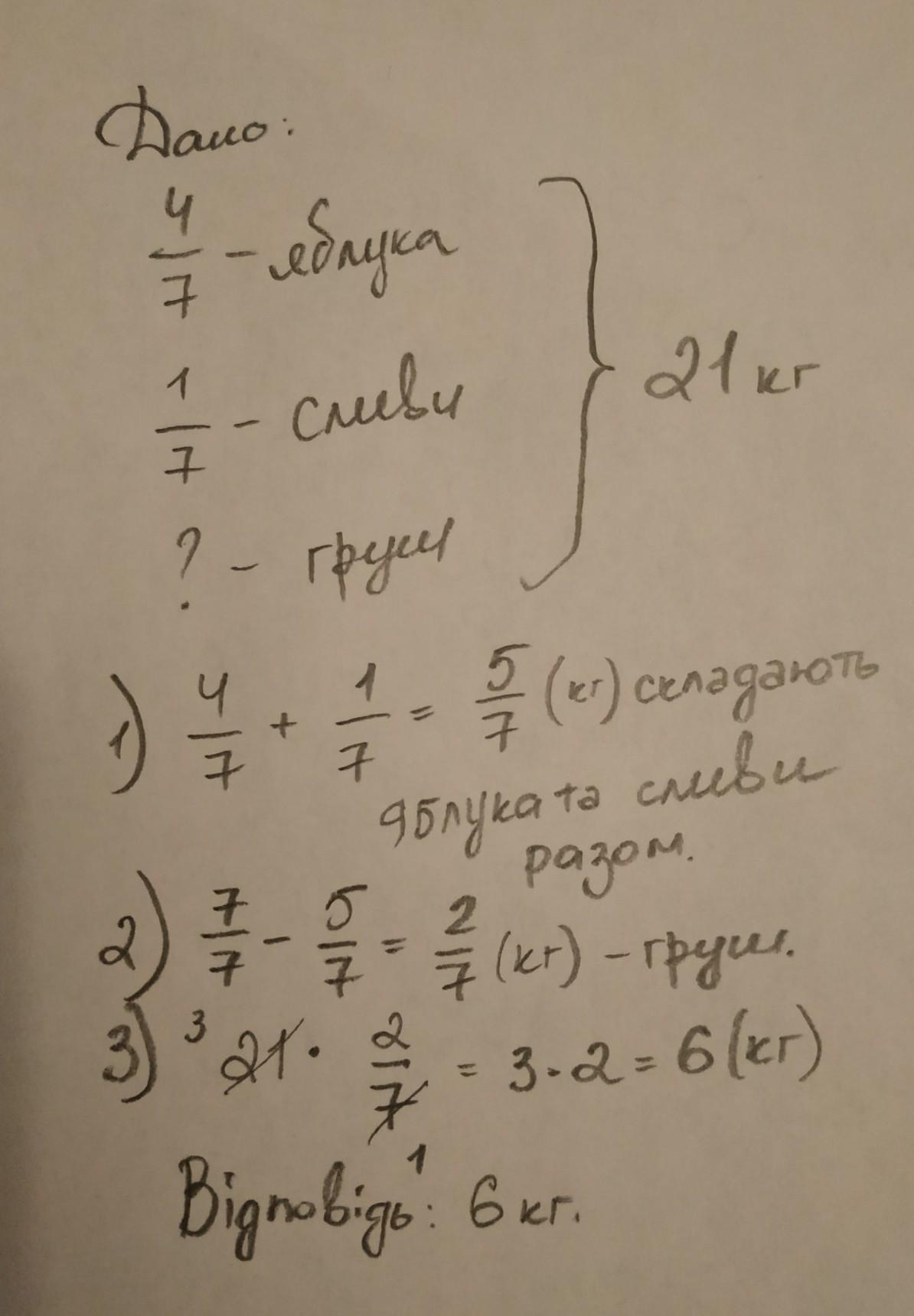 1) 21 • ⁴/7 = (21 : 7) • 4 = 12 кг - яблука