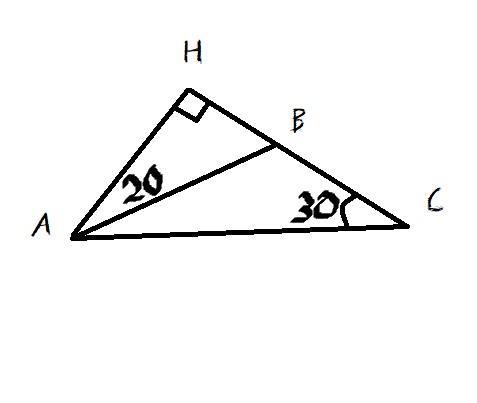 высота АН треугольника ВВС опущена на продолжение стороны ВС за точку В. известно, что угол ВСА равен 30°, угол ВАН равен 20°.найти угол ВАС