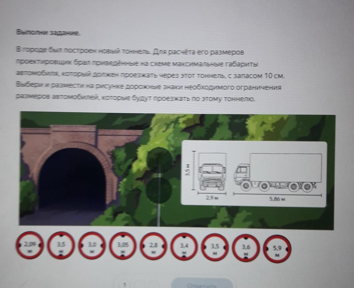в городе был построен новый тоннель точка для расчёта размеров проектировщик mpall проведения на схеме максимальные габариты автомобиля, которые должен проезжать этот план или, запасом 10 см. Выбери или вместе на рисунке дорожные знаки необходимого ограничения размеров автомобилей, которые будут проезжать по этому тоннелю.