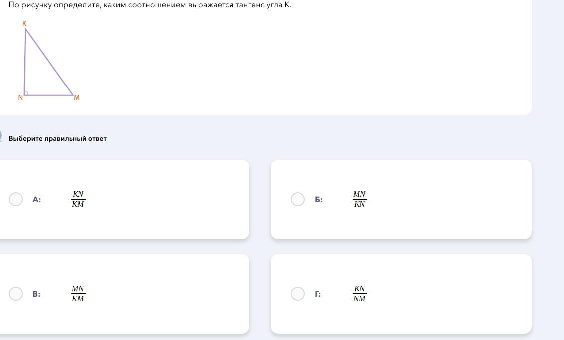 Объяснение: тангенс угла в прямоугольном треугольнике - это отношение противолежащего катета к прилежащему