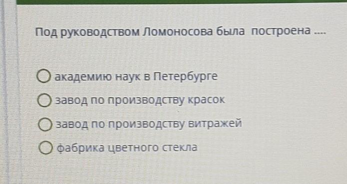 Ломоносов организовал первую в России химическую лабораторию. Под его руководством построили фабрику цветного стекла. В честь Ломоносова назван университет, который находится в Москве.