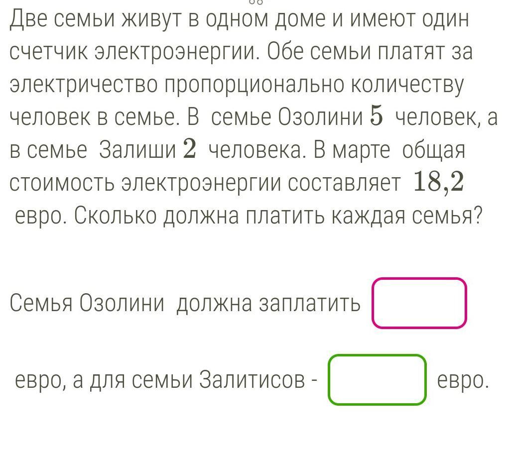 Семья Озолини-13евро, семья Залиши-5,2 евро