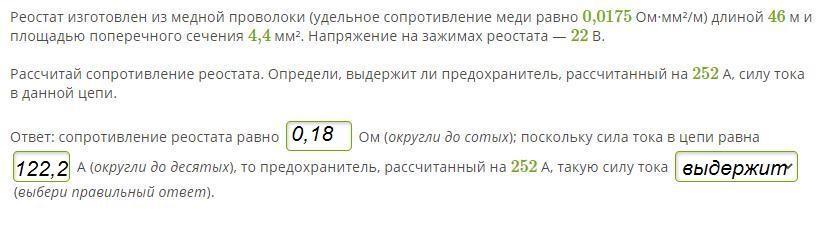 Поскольку сила тока в цепи равна I=U/R=22 В/0,18 Ом=122,2 А, то предохранитель, рассчитанный на силу тока 252 А выдержит