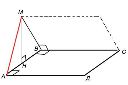 MB перпендикуляр к плоскости прямоугольника, угол BAD прямой,