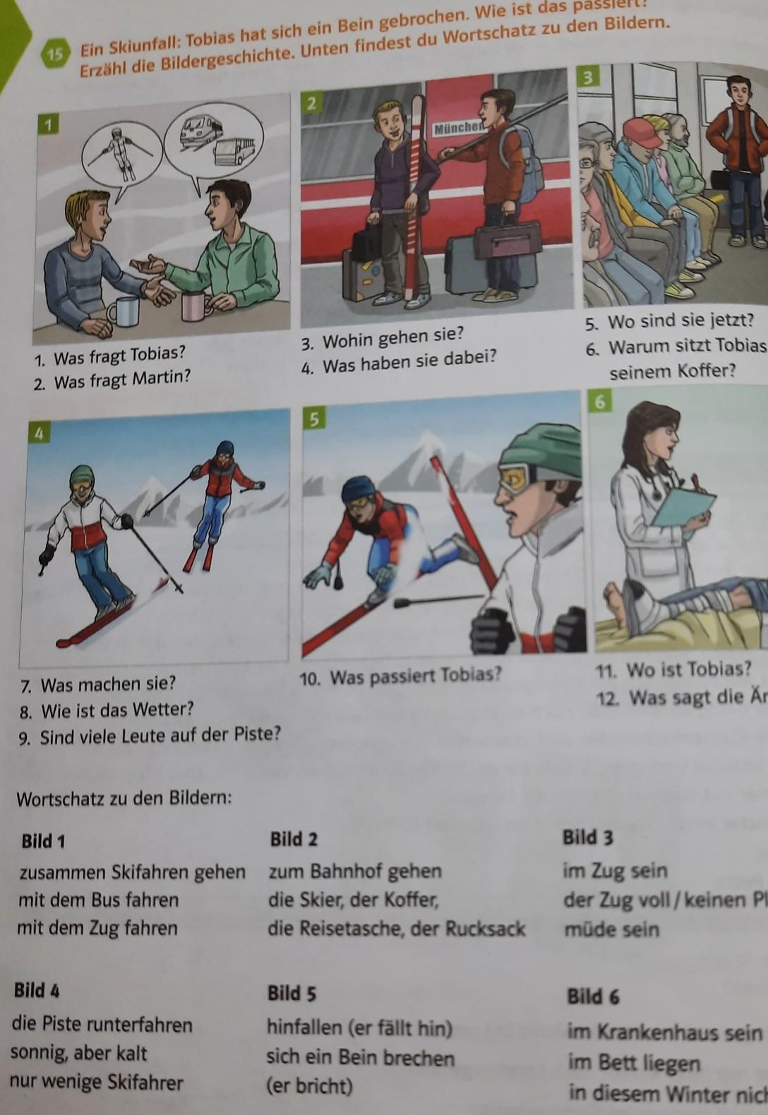 Eines Tages zwei Freunde Essen am Tisch beschlossen dass sie in die Berge gehen wollen dass es eine Fahrt.Sie versammelten sich und fuhren zur Haltestelle um noch in die Berge zu fahren.Sie stiegenin die S-Bahn und fuhren zum Ziel.Sie waren shon in den Bergen wohin sie wollten und dort begannen sie Ski zu fahren und nicht nur.Und dann passierte dass Problem als ein Freund von den Skiern fiel und sich das Bein brach.Ein Freund wurde dann mit einem gebrochenen Bein ins Krankenhaus gebracht und geheilt