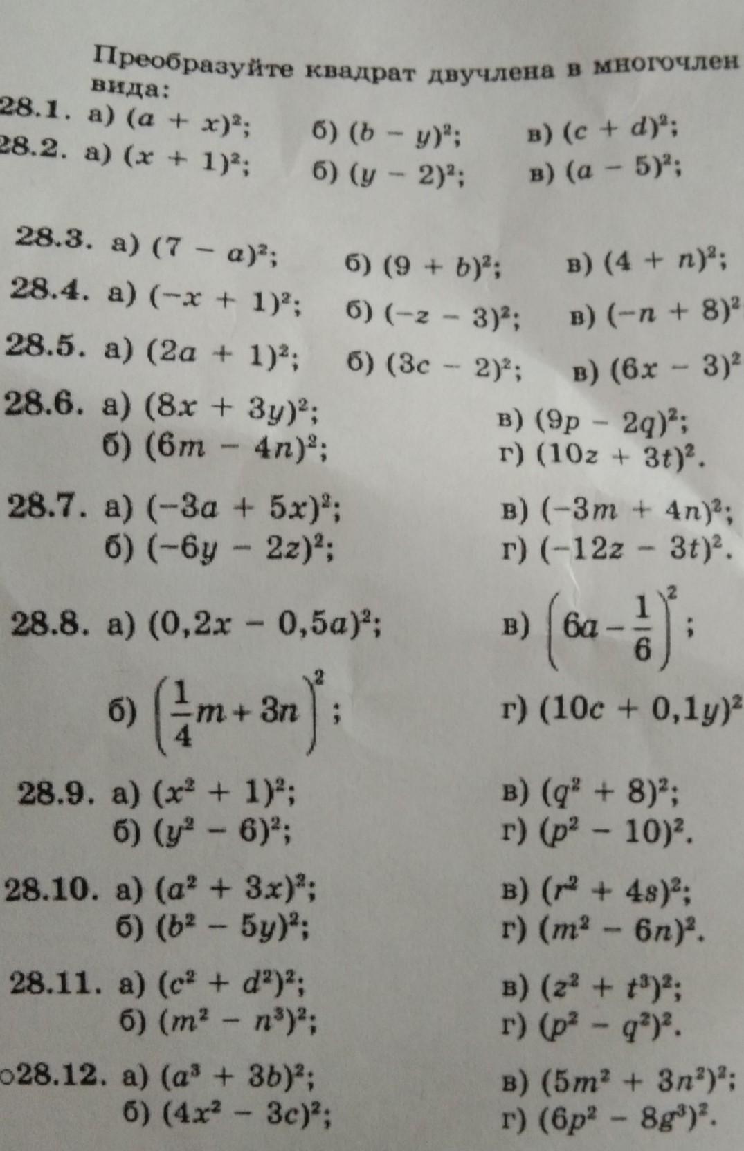 в) (-n + 8)² = (-n)² +2·(-n)·8+8² = n²-16n+64