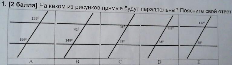 На рисунке А прямые будут параллельны, так как углы равны как соответственные (159 градусов)