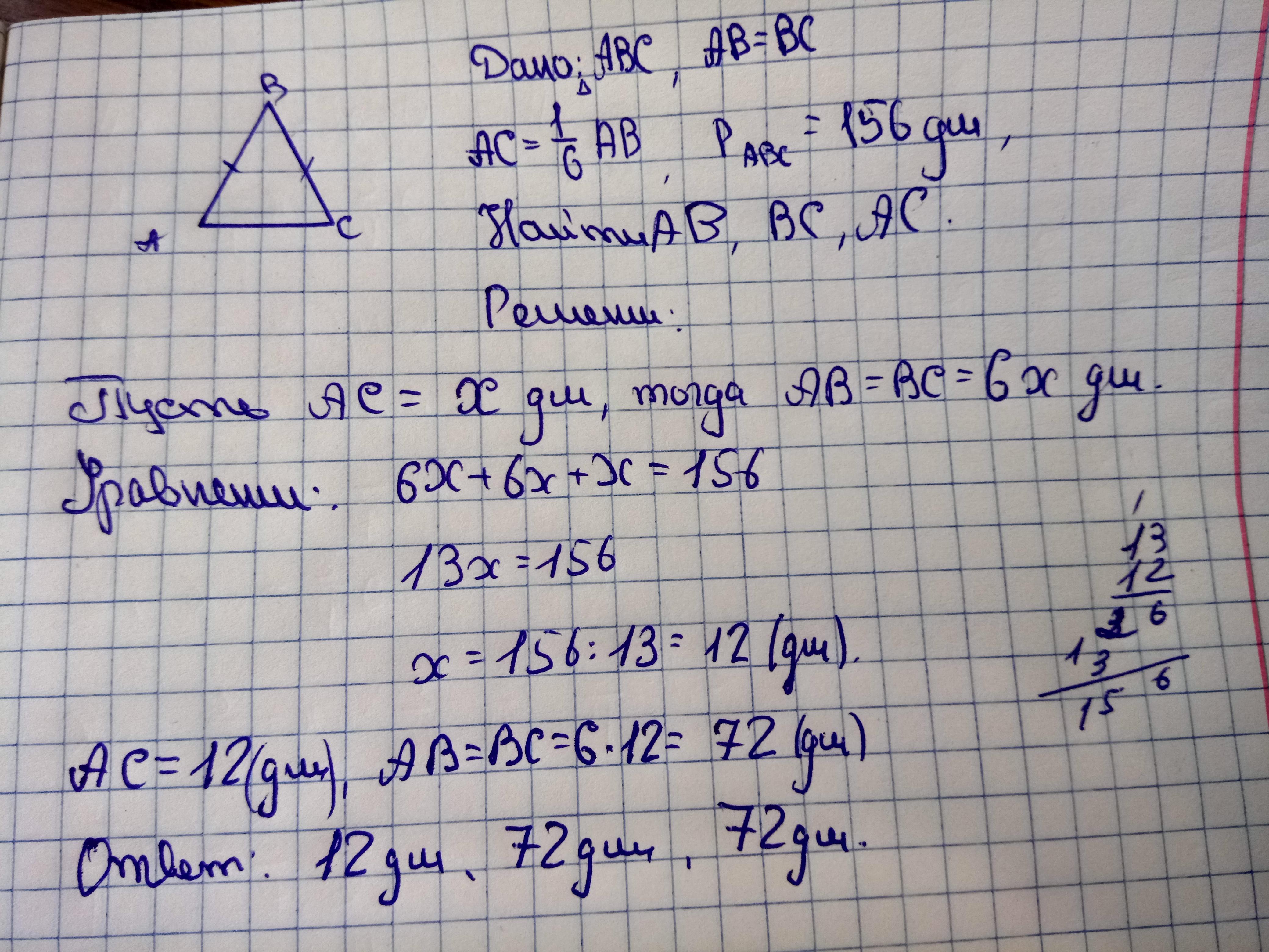 Основание AB треугольника равно 1/6 боковой стороны треугольника.