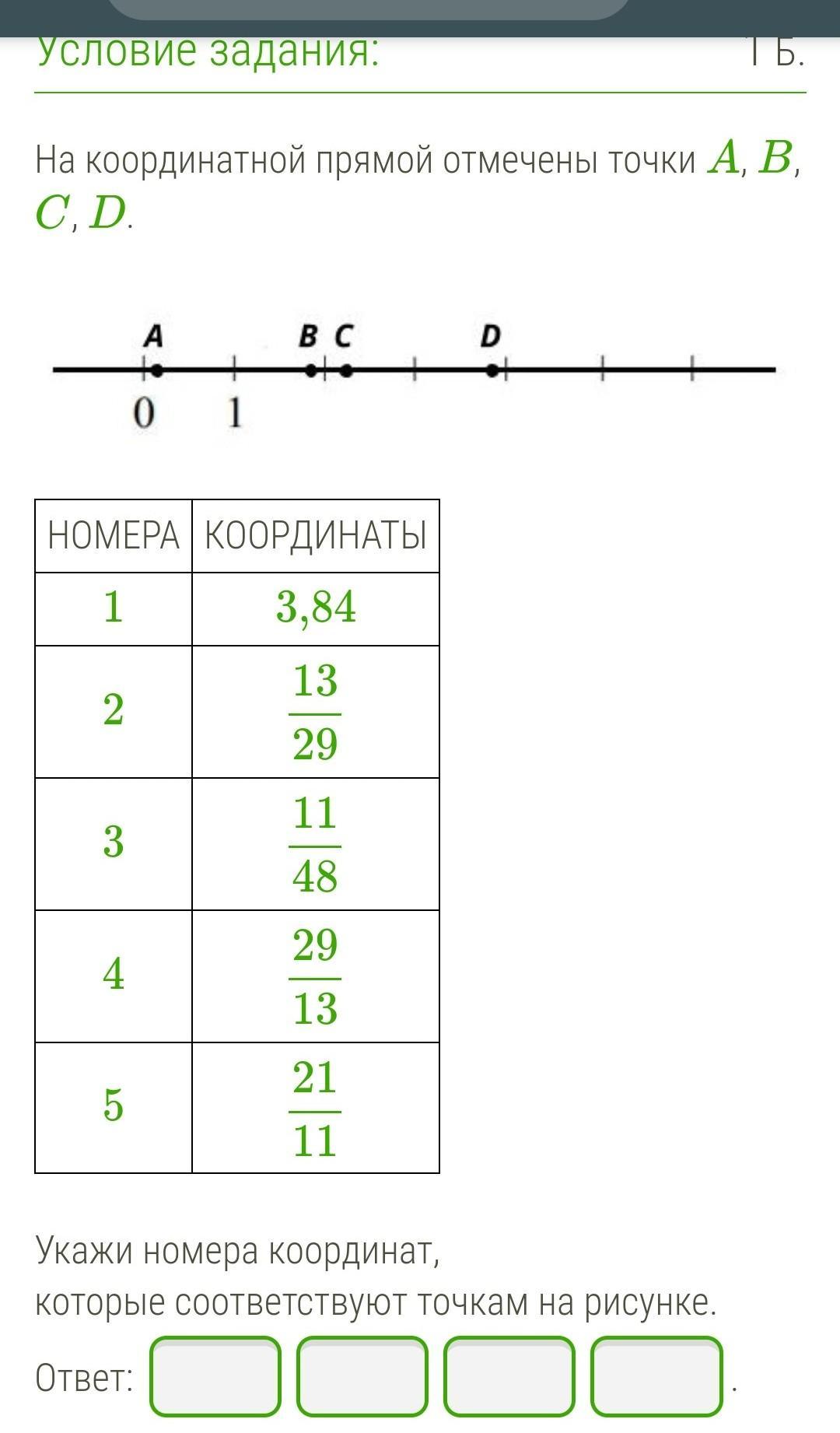 Укажи номера координат, которые соответствуют точкам на рисунке.