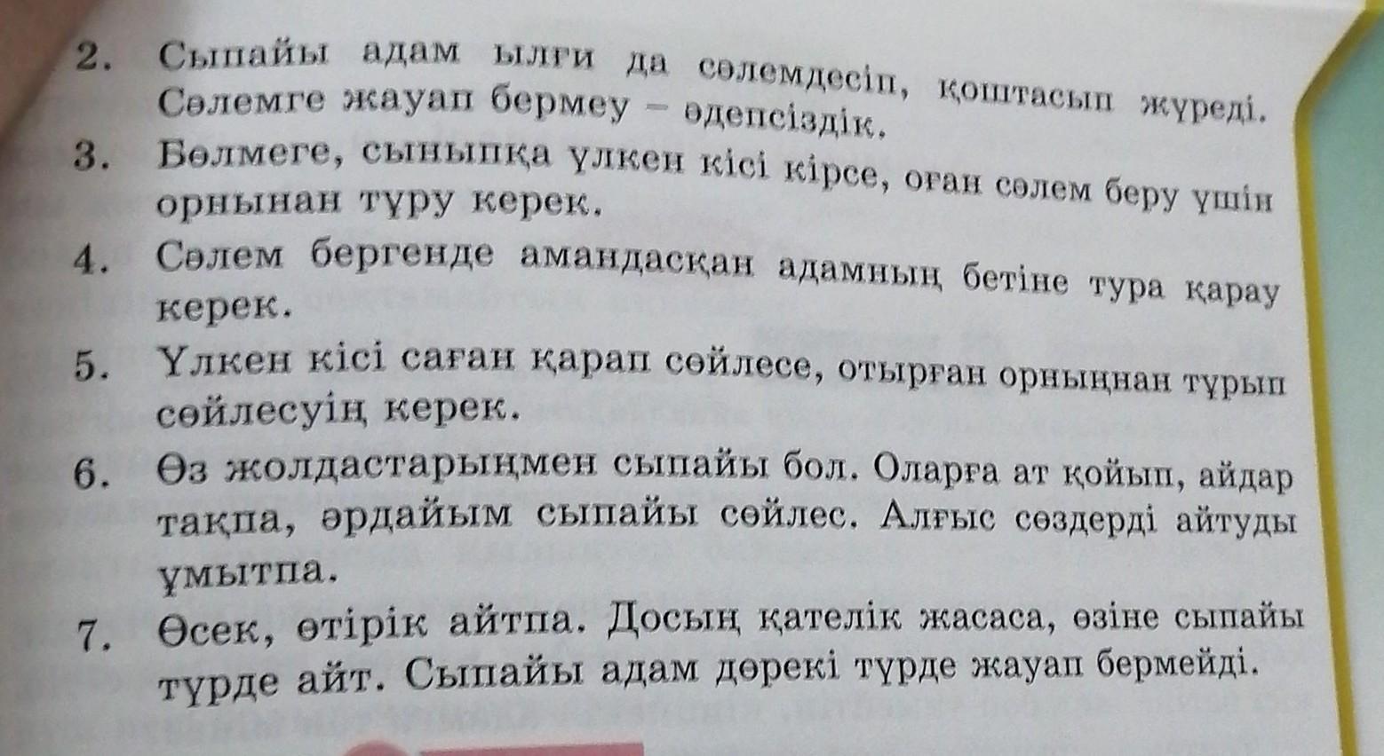 Сыпайылық пен сөйлеу мәдениетінің ережелері: