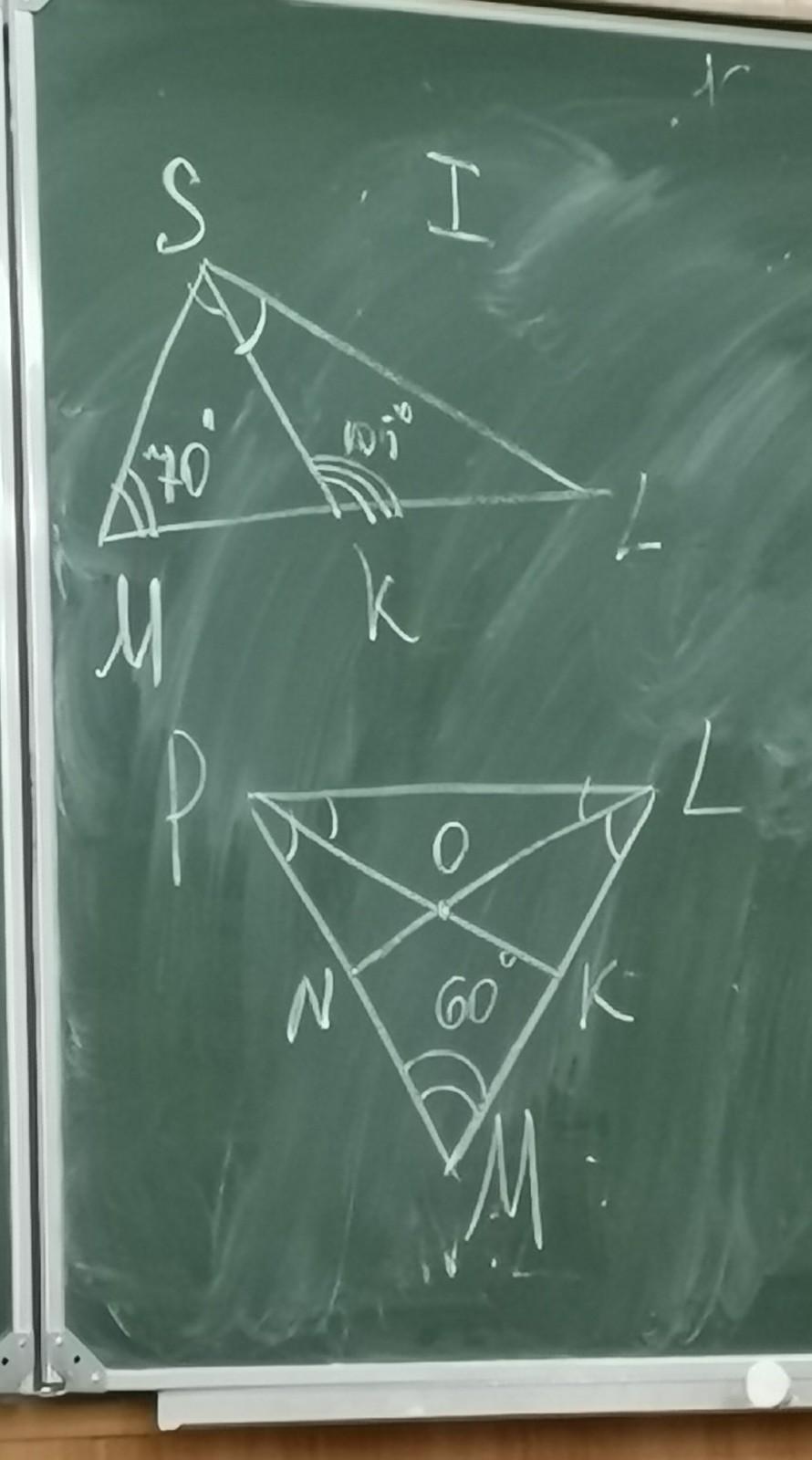 угол MSK равен 180°-95°-70°=15° следовательно угол KSL равен тоже 15°