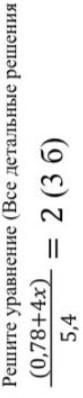 6. Решите уравнение (Все детальные решения запишите в черновик): (0,78+4x)/5,4 = 2