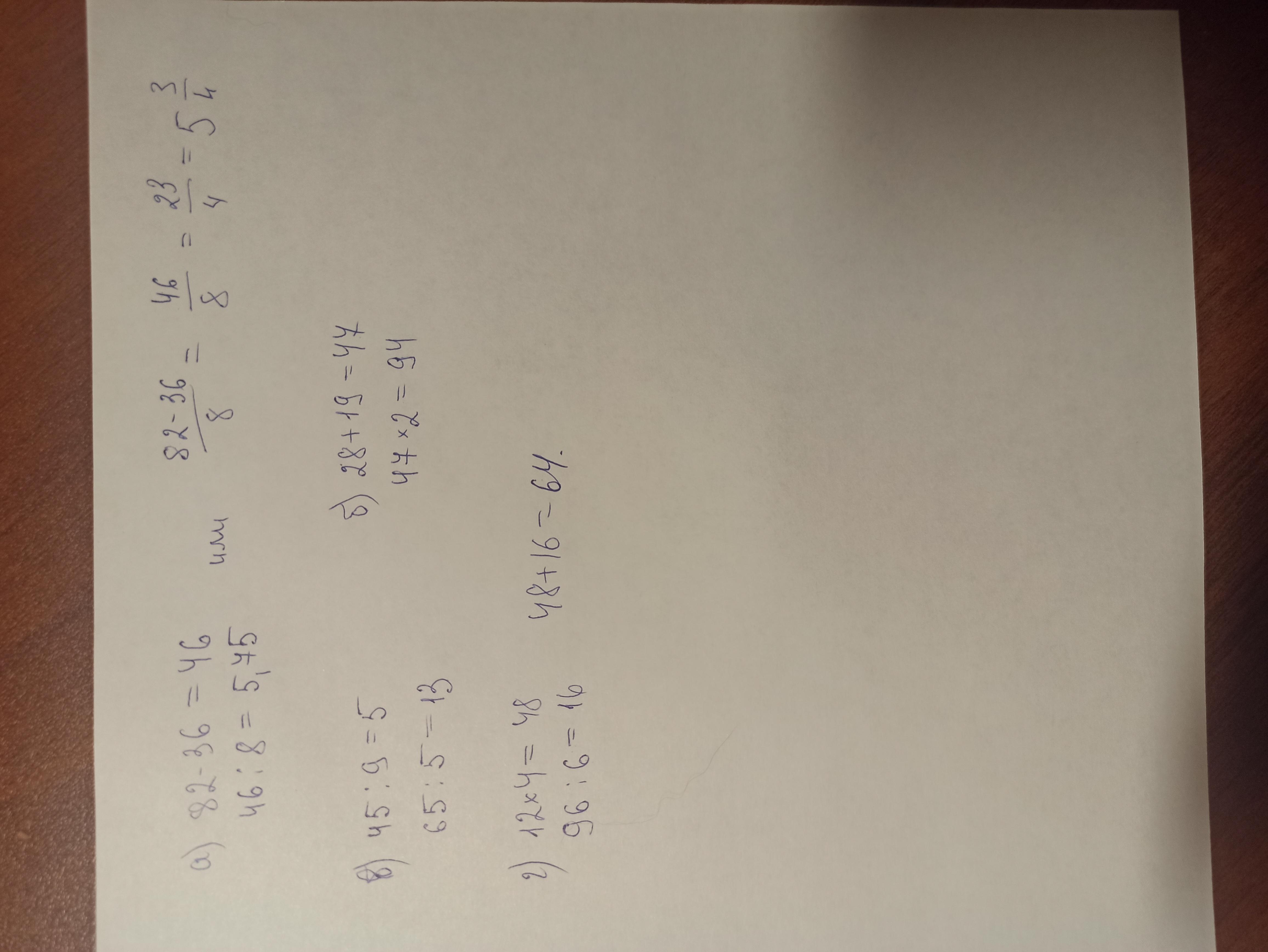 а) (82 - 36) ÷ 8 = 46 ÷ 8 = 5,75.