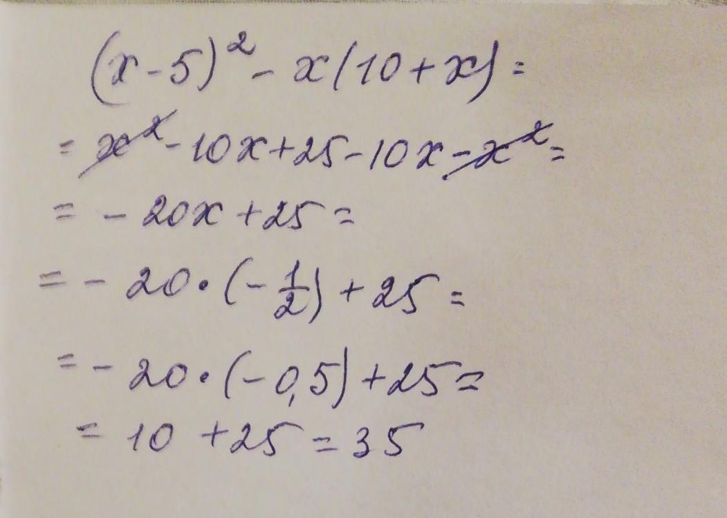 Упростите выражение (x-5)²-x(10+x) найдите его значение при x=-1/2 В ответ запишите полученное число.